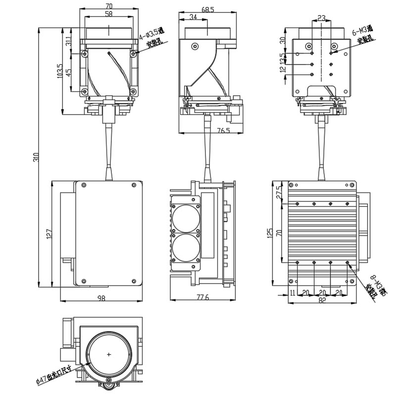 | LASER BEAM Angle | Angolu 'l bogħod 0.3 °, distanza effettiva> 3000m, dijametru tal-post tar-raġġ<φ16m |
