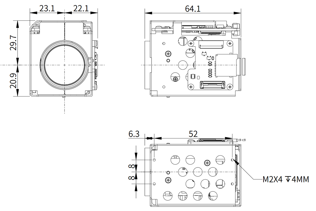 | Field of View | H:60.2°~6.6°, V:36.1°~3.7°,D:67.3°~7.6° | ||||